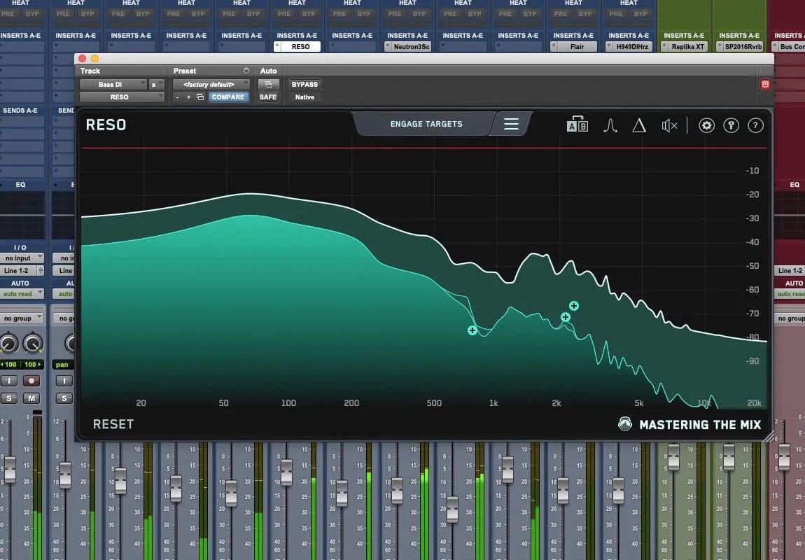 Bei Mastering The Mix haben wir eine bessere Lösung: das Plugin RESO. Dieses unverzichtbare Plug-in ist eine effektive Lösung zur Beseitigung unerwünschter Resonanzen. Und zwar automatisch - ohne lästige EQ-Sweeps!
