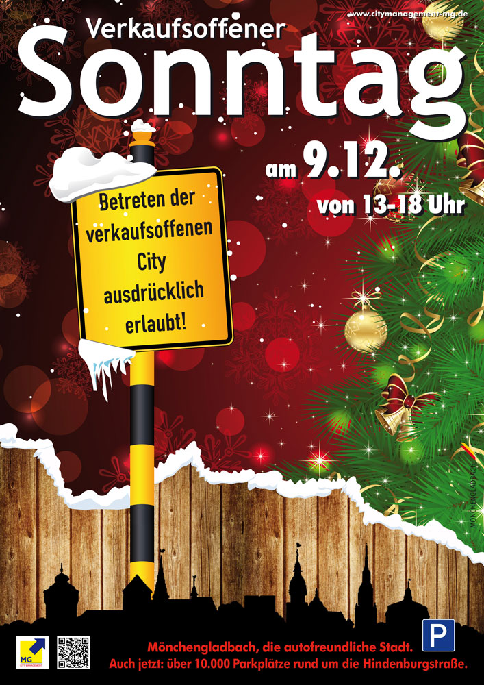 Für das CityManagement Mönchengladbach durften wir die von uns im September eingeführte Kampagne mit dem Slogan "Betreten der verkaufsoffenen City ausdrücklich erlaubt!" in der Weihnachtsausgabe fortführen. Veröffentlicht wurde die erfolgreiche Plakataktion, die außerdem vom Thema auch in den laufenden Funkspots aufgegriffen und verarbeitet wurde, außerdem auch als Header auf den Seiten der Mönchengladbach Arcaden. Wir finden: Eine prima Sache...